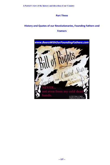 A Patriot’s view of the history and direction of our Country Part Three History and Quotes of our Revolutionaries, Founding Fathers and Framers -- 127 --