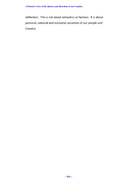 A Patriot’s view of the history and direction of our Country deflection. This is not about semantics or fairness. It is about personal, national and economic securities of our people and Country. -- 351 --