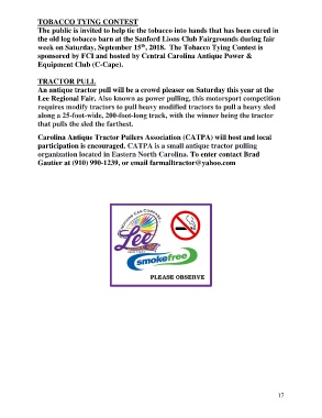 week on Saturday, September 15 , 2018. The Tobacco Tying Contest is