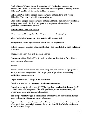 Contestant with a Cook-Off entry will be admitted free to the Fair. Others