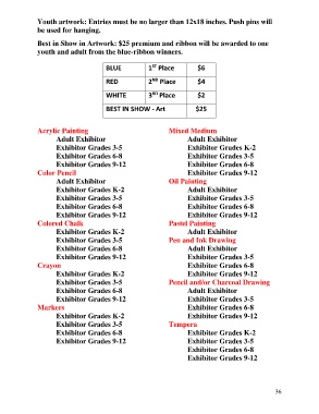 Youth artwork: Entries must be no larger than 12x18 inches. Push pins will