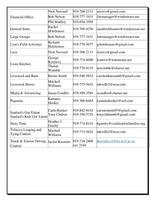 Lion's Field Activities Holshouser 919-777-3431 fairmanager@windstream.net