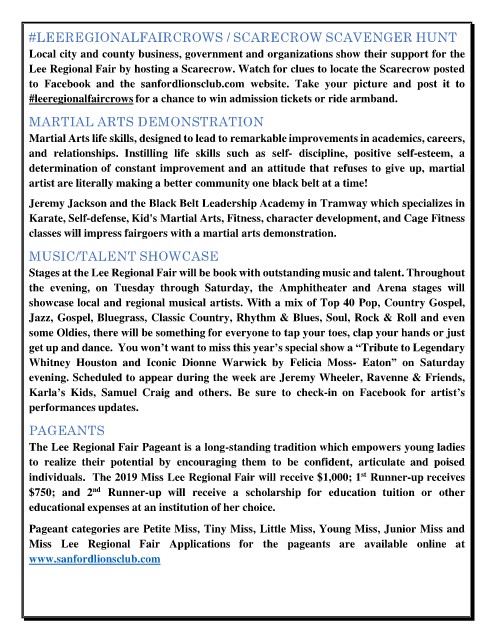 individuals. The 2019 Miss Lee Regional Fair will receive $1,000; 1st Runner-up receives