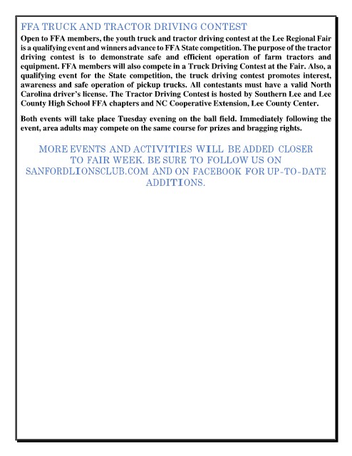 equipment. FFA members will also compete in a Truck Driving Contest at the Fair. Also, a