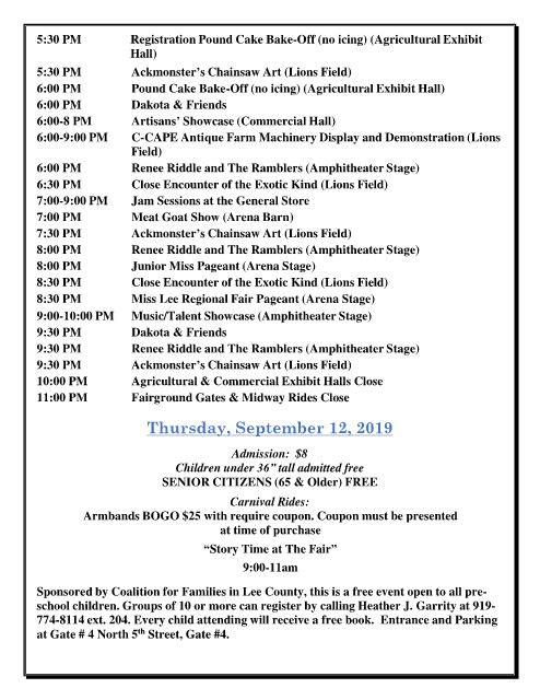 8:30 PM Miss Lee Regional Fair Pageant (Arena Stage)