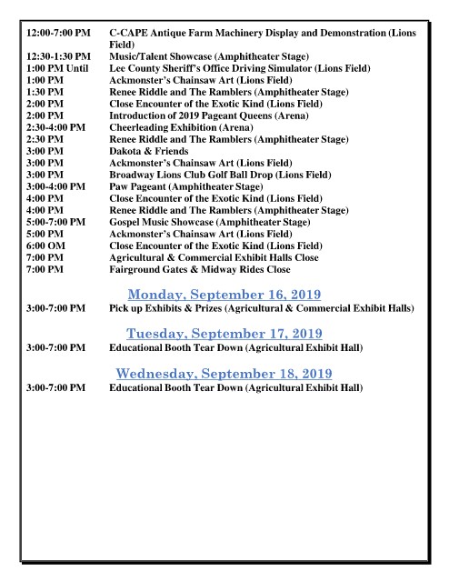 3:00-7:00 PM Pick up Exhibits & Prizes (Agricultural & Commercial Exhibit Halls)