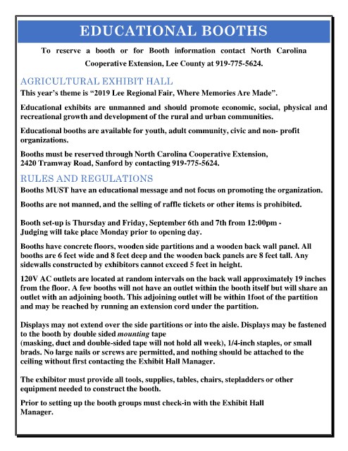 This year’s theme is “2019 Lee Regional Fair, Where Memories Are Made”.