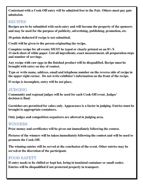 Contestant with a Cook-Off entry will be admitted free to the Fair. Others must pay gate