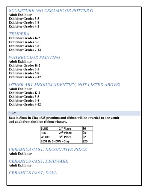 Best in Show in Clay: $25 premium and ribbon will be awarded to one youth