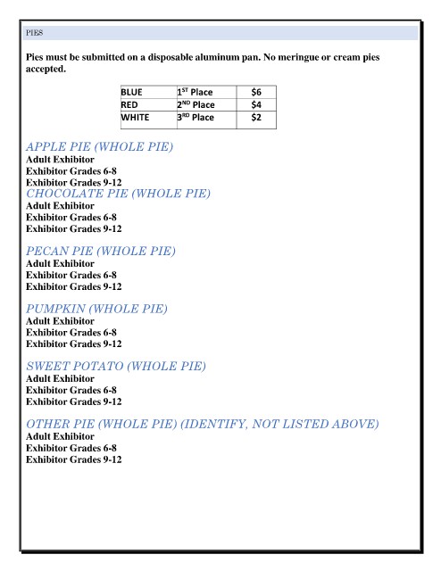 Pies must be submitted on a disposable aluminum pan. No meringue or cream pies