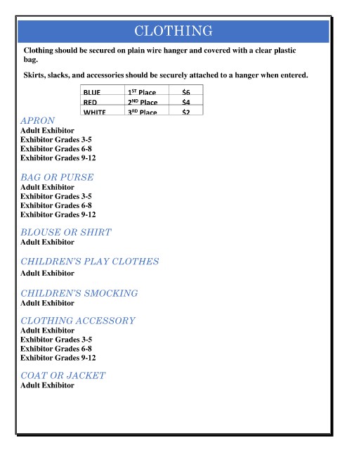 Skirts, slacks, and accessories should be securely attached to a hanger when entered.