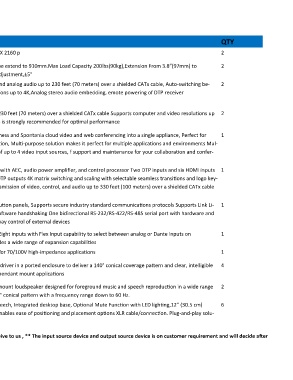 6 Scaling Presentation Matrix Switcher All in one 8x4 4K matrix switcher, scaler, audio DSP with AEC, audio power amplifier, and control processor Two DTP inputs and six HDMI inputs 1