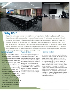 room. tem via HDMI and analog audio. An Extron recorder is a single-box solution that corporates high-quality audio friendly GUI for the system, the meeting leader