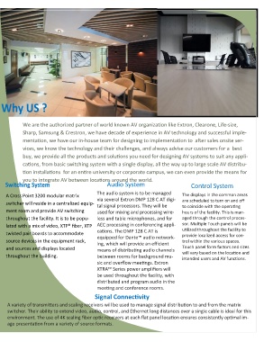 Display Requirements :There will be significant ambient lighting throughout all areas. mobile devices. Videoconferencing codecs twisted pair boards to accommodate equipped for Dante™ audio network- provide localized access for con-