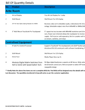 ** Kindly Note the above line items are not a complete BOQ the final BOQ will be designed once the details will receive to us , ** The input source device and output source device is on customer requirement and will decide after mu-