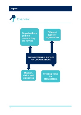 Chapter 1 Overview Different Organisations and the types of reasons they organisation are formed THE DIFFERENT PURPOSES OF ORGANISATIONS Mission, Creating value vision and for objectives stakeholders 2