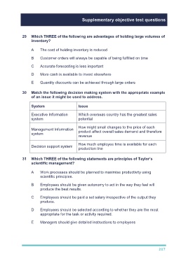 Supplementary objective test questions