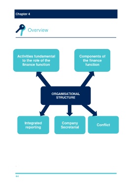 Chapter 4 Overview Activities fundamental Components of to the role of the the finance finance function function ORGANISATIONAL STRUCTURE Integrated Company Conflict reporting Secretarial . 44