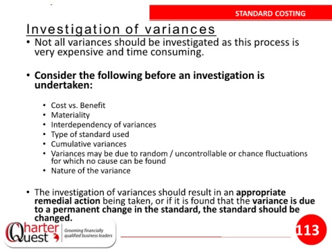 • Variances may be due to random / uncontrollable or chance fluctuations