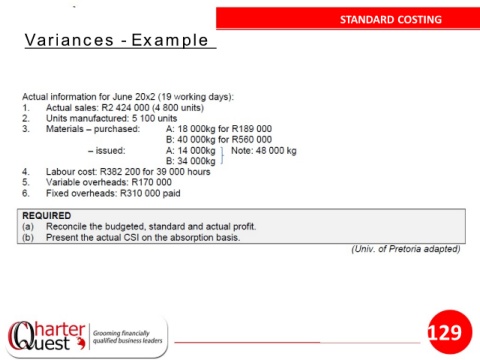 STANDARD COSTING Variances - Example 129
