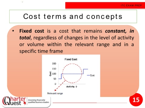 • Fixed cost is a cost that remains constant, in