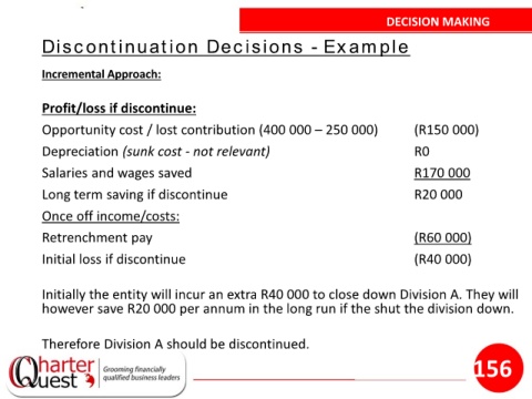 Initially the entity will incur an extra R40 000 to close down Division A. They will