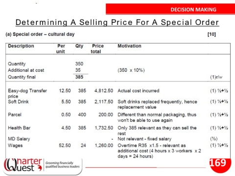 DECISION MAKING Determining A Selling Price For A Special Order 169