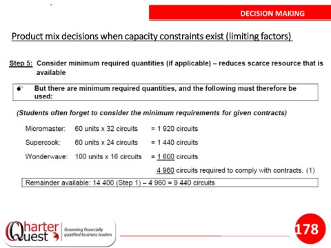DECISION MAKING Product mix decisions when capacity constraints exist (limiting factors) 178