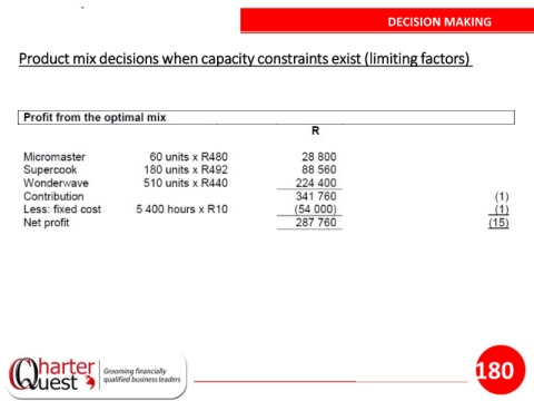 DECISION MAKING Product mix decisions when capacity constraints exist (limiting factors) 180