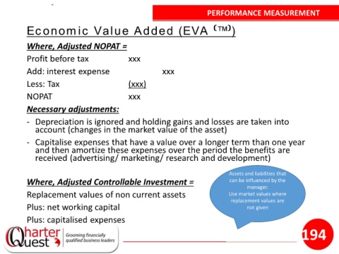 Where, Adjusted Controllable Investment = can be influenced by the