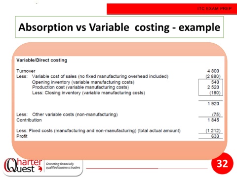 ITC EXAM PREP Absorption vs Variable costing - example 32