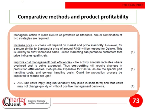 ITC EXAM PREP Comparative methods and product profitability 73