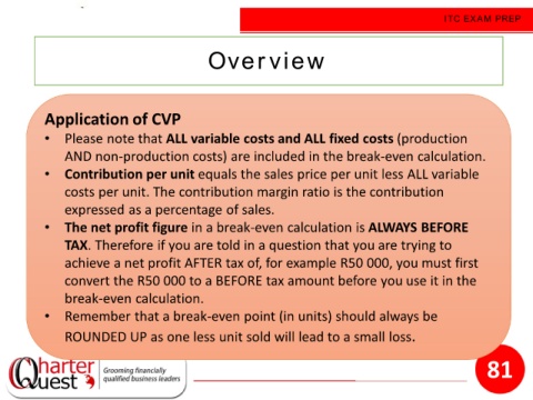• The net profit figure in a break-even calculation is ALWAYS BEFORE