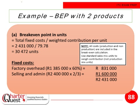 = Total fixed costs / weighted contribution per unit