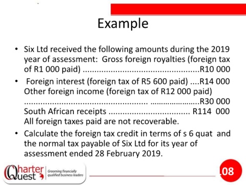 • Calculate the foreign tax credit in terms of s 6 quat and