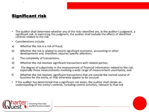 • The auditor shall determine whether any of the risks identified are, in the auditor’s judgment, a