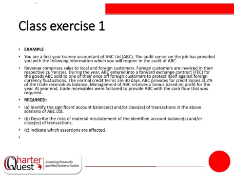 • You are a first year trainee accountant of ABC Ltd (ABC). The audit senior on the job has provided