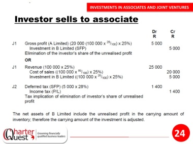INVESTMENTS IN ASSOCIATES AND JOINT VENTURES Investor sells to associate 24