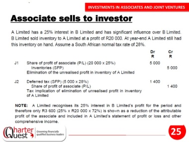 INVESTMENTS IN ASSOCIATES AND JOINT VENTURES Associate sells to investor 25
