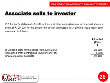 INVESTMENTS IN ASSOCIATES AND JOINT VENTURES Associate sells to investor 26