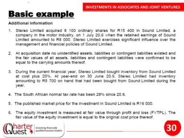 INVESTMENTS IN ASSOCIATES AND JOINT VENTURES Basic example 30
