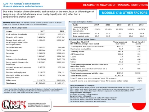 financial statements and other factors. READING 17: ANALYSIS OF FINANCIAL INSTITUTIONS