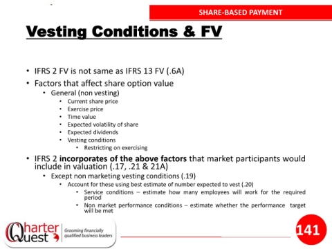 • IFRS 2 FV is not same as IFRS 13 FV (.6A)