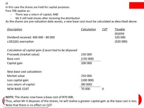 CAPITAL GAINS TAX Reduction in BC of shares (para 76B) – e.g. 145
