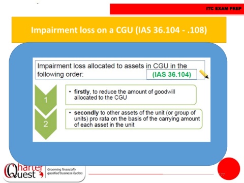 ITC EXAM PREP Impairment loss on a CGU (IAS 36.104 - .108) 177