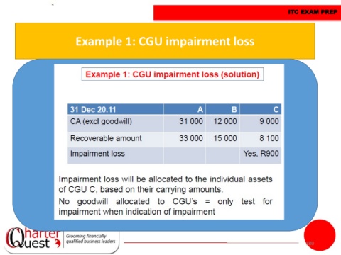 ITC EXAM PREP Example 1: CGU impairment loss 180