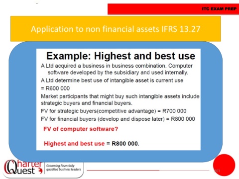 ITC EXAM PREP Application to non financial assets IFRS 13.27 203