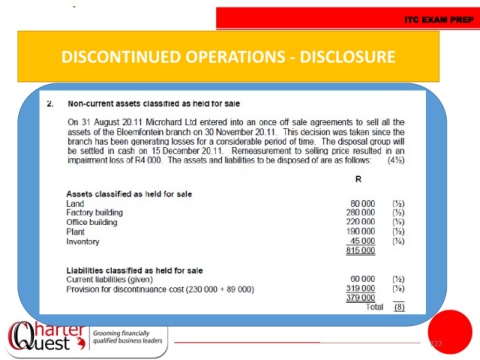 ITC EXAM PREP DISCONTINUED OPERATIONS - DISCLOSURE 222