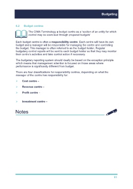 The CIMA Terminology a budget centre as a ‘section of an entity for which