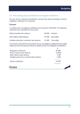 6.4 Reconciling actual contribution and budgeted contribution.